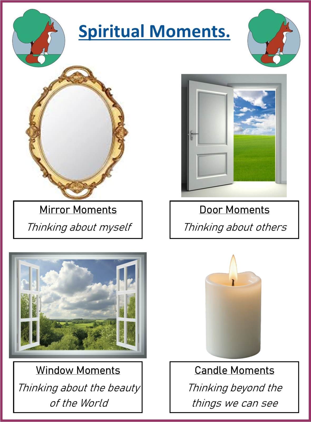 Through these Spiritual Moments we provide opportunities for the children to reflect and think more deeply. This enables them to think carefully about the world around them and to consider the contribution they can make to it.